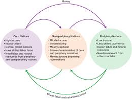 In world-systems analysis, the countries of the world are identified as core, periphery, or semi-periphery. The core countries are the wealthy countries, have high-cost labor, use the most recent technology and innovations, and export high-cost finished goods to the periphery. The countries of the periphery have low-cost labor, use old technology and innovations, and export cheap raw materials to the core.